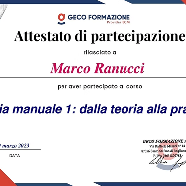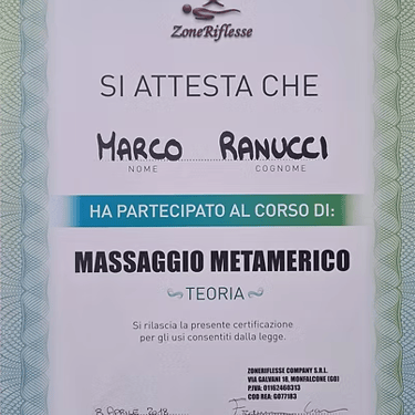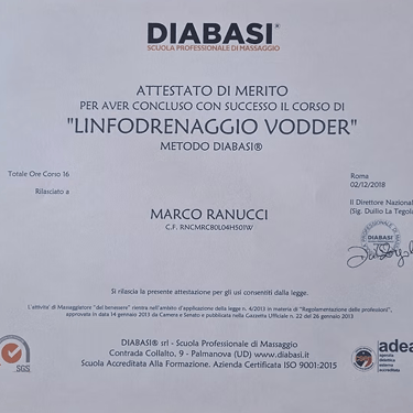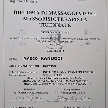 L’ANNO SUCCESSIVO ALLA LAUREA DA MFT SI ISCRIVE ALLA SCUOLA NAZIONALE DEL MASSAGGIO DIABASI, ALLA SCUOLA DELLO CSEN PER DIVENTARE MASSAGGIATORE SPORTIVO ED INFINE ALL’ISTITUTO DELL’EUROPEAN OSTEOPATHIC SCHOOL CON LINEE GUIDA T2 DELL’OMS CEN EN16686.